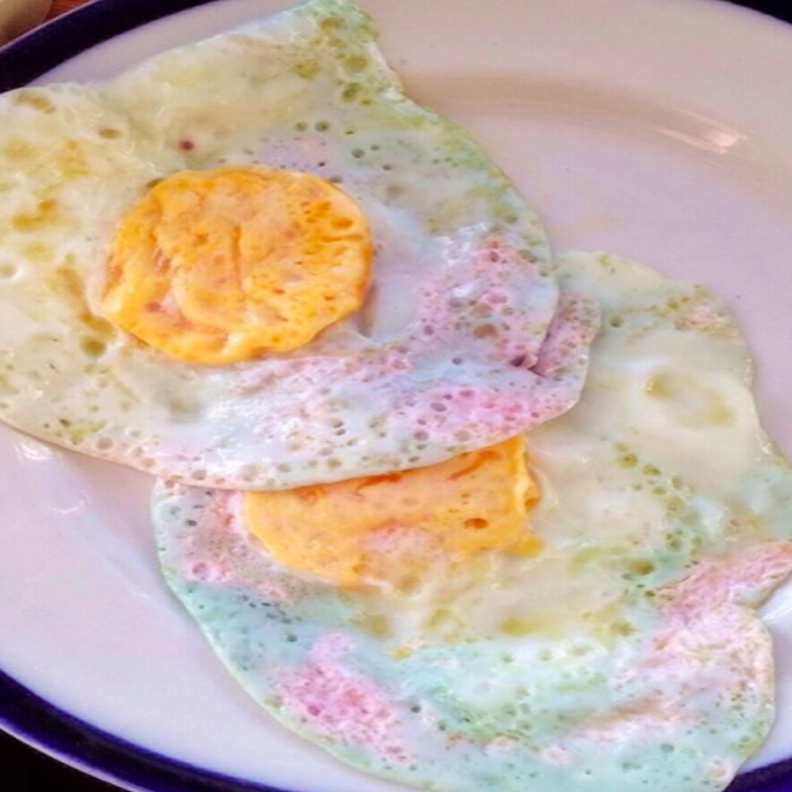 2. La fois où quelqu'un s'est dit que c'était une bonne idée de faire de VÉRITABLES œufs verts sur le plat.